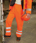Waterproof, windproof. Conforms to 89/686/EEC directive. Taped seams, no outside leg seam. 2 side access pockets and 1 back key pocket. Elasticated waist with drawcord adjuster. Stud closing ankle adjusters. 50mm sewn on safety tapes incorporating 3M™ Scotchlite™ reflective materials.